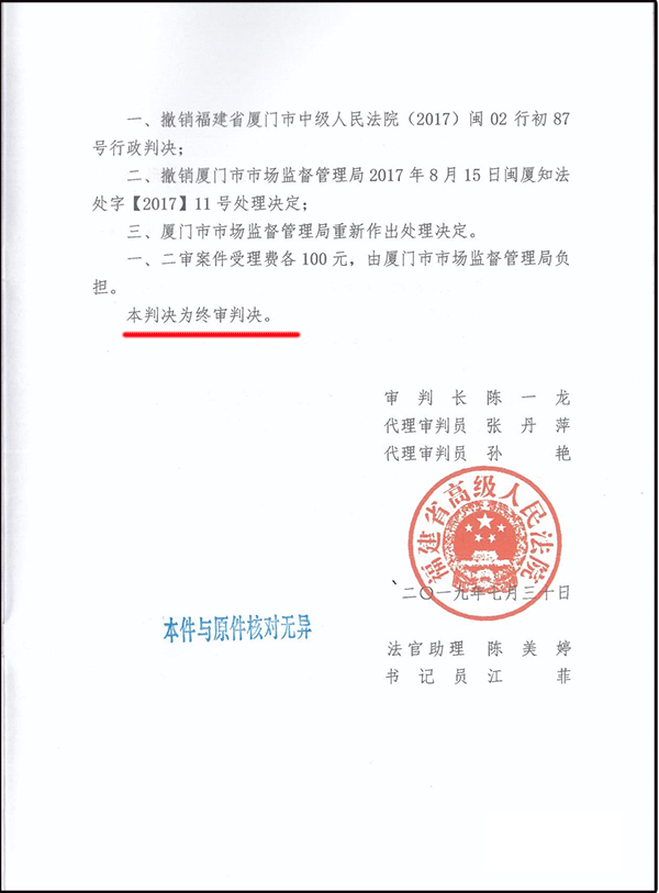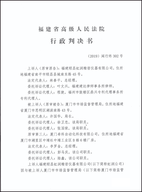 附件:福建省高級人民法院【2019】閩行終302號行政判決書
