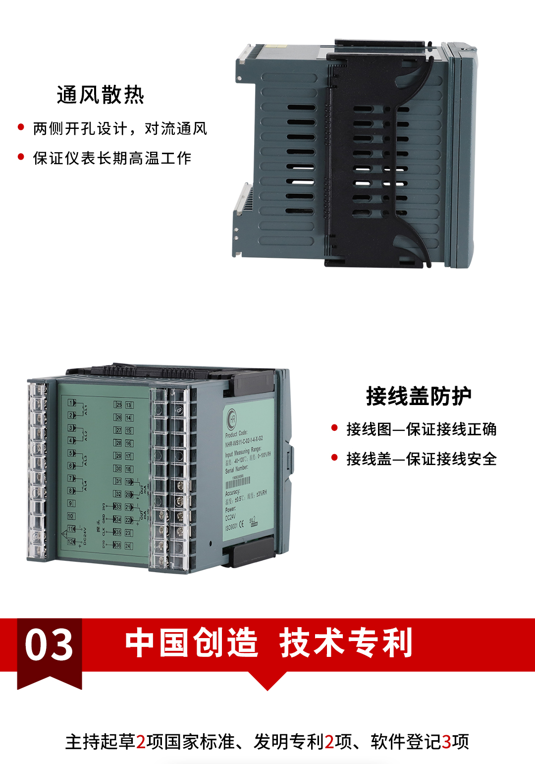 虹潤(rùn)公司是專業(yè)生產(chǎn)環(huán)境監(jiān)測(cè)儀表的國(guó)家專精特新“小巨人”企業(yè)。生產(chǎn)的盤裝式溫濕度控制器,具有溫度、濕度、露點(diǎn)高精準(zhǔn)的測(cè)量,壁掛式結(jié)構(gòu),IP65防護(hù)穩(wěn)定性強(qiáng),高抗干擾,帶RS485/RS232通訊輸出等級(jí)等特點(diǎn)。產(chǎn)品獲得一種手持式低功耗溫濕度檢測(cè)儀、大屏幕溫濕度記錄儀等2項(xiàng)國(guó)家發(fā)明專利,主持起草物聯(lián)網(wǎng)智能溫度儀表通用技術(shù)條件、冷鏈溫度記錄儀等2項(xiàng)國(guó)家標(biāo)準(zhǔn),通信系統(tǒng)多通道數(shù)據(jù)采集控制終端規(guī)范軍用標(biāo)準(zhǔn),以及現(xiàn)場(chǎng)設(shè)備集成等5項(xiàng)智能制造國(guó)家標(biāo)準(zhǔn),參與國(guó)際5G標(biāo)準(zhǔn)制定,取得溫濕度儀表等2項(xiàng)相關(guān)軟件著作權(quán)。產(chǎn)品廣泛應(yīng)用于工業(yè)現(xiàn)場(chǎng)、農(nóng)業(yè)大棚、倉(cāng)儲(chǔ)物流、地下管廊、養(yǎng)殖孵化、配電機(jī)房等諸多領(lǐng)域。