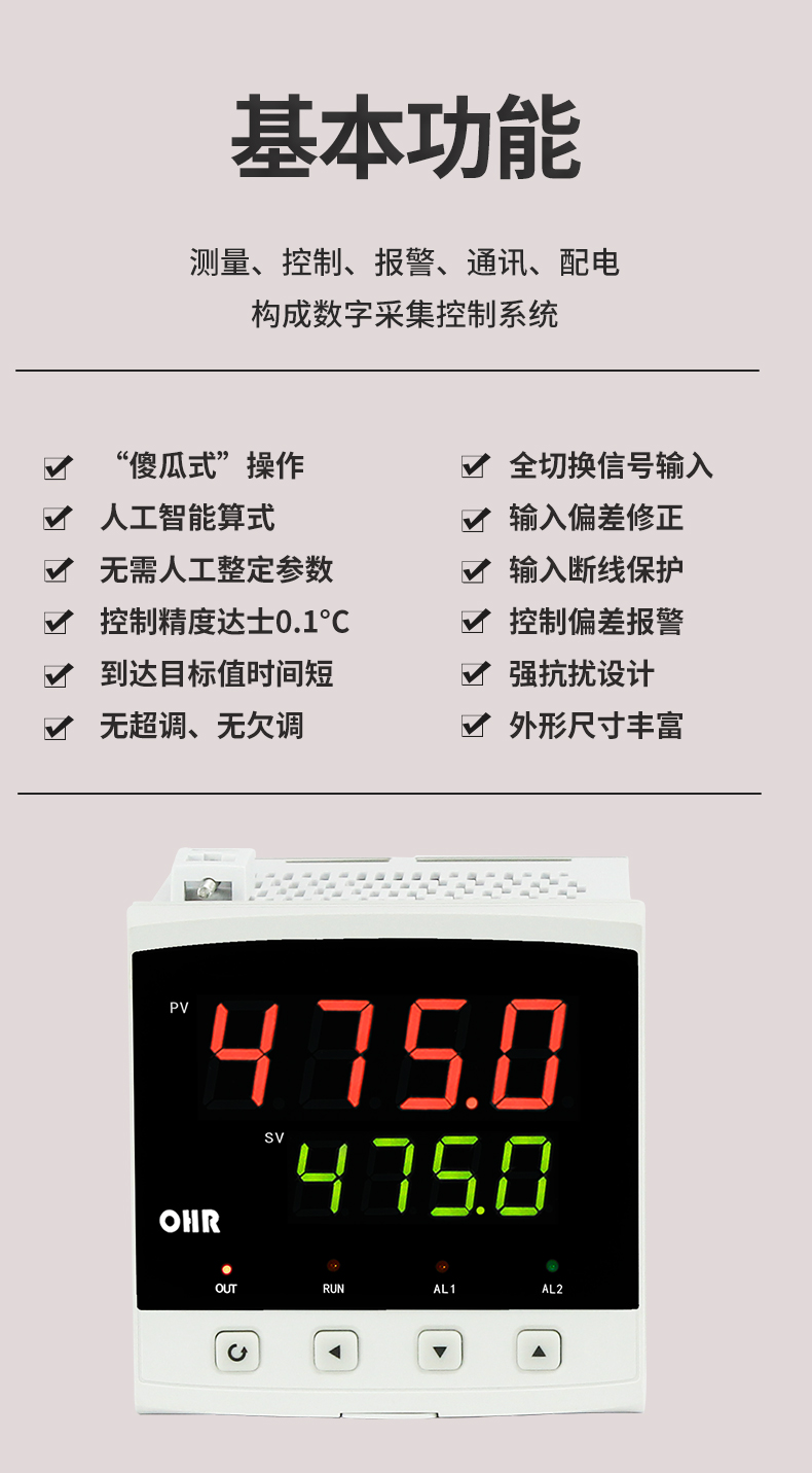 虹潤公司是專業(yè)生產溫控器的國家專精特新“小巨人”企業(yè)。生產的傻瓜式智能溫控器,具有傻瓜式操作,真正人工智能算式,無需人工整定參數,控制精度可達±0.1°C,高抗干擾等特點。產品獲得模糊PID控制儀及控制方法、人工智能調節(jié)器、智能化控制器、移相觸發(fā)控制器、閥門自動手動無擾動操作控制方法及裝置等5項國家發(fā)明專利,主持起草工業(yè)過程控制系統用模擬輸入兩位或多位輸出儀表、物聯網智能溫度儀表通用技術條件、工業(yè)過程測量和控制系統用智能調節(jié)器等3項國家標準,以及通信系統多通道數據采集控制終端規(guī)范軍用標準,參與國際5G標準制定,取得傻瓜式模糊PID調節(jié)儀等3項相關軟件著作權。產品廣泛應用于電力、石化,冶金、制藥、食品等幾乎所有工業(yè)現場,實現精準控溫,保障生產安全與質量。