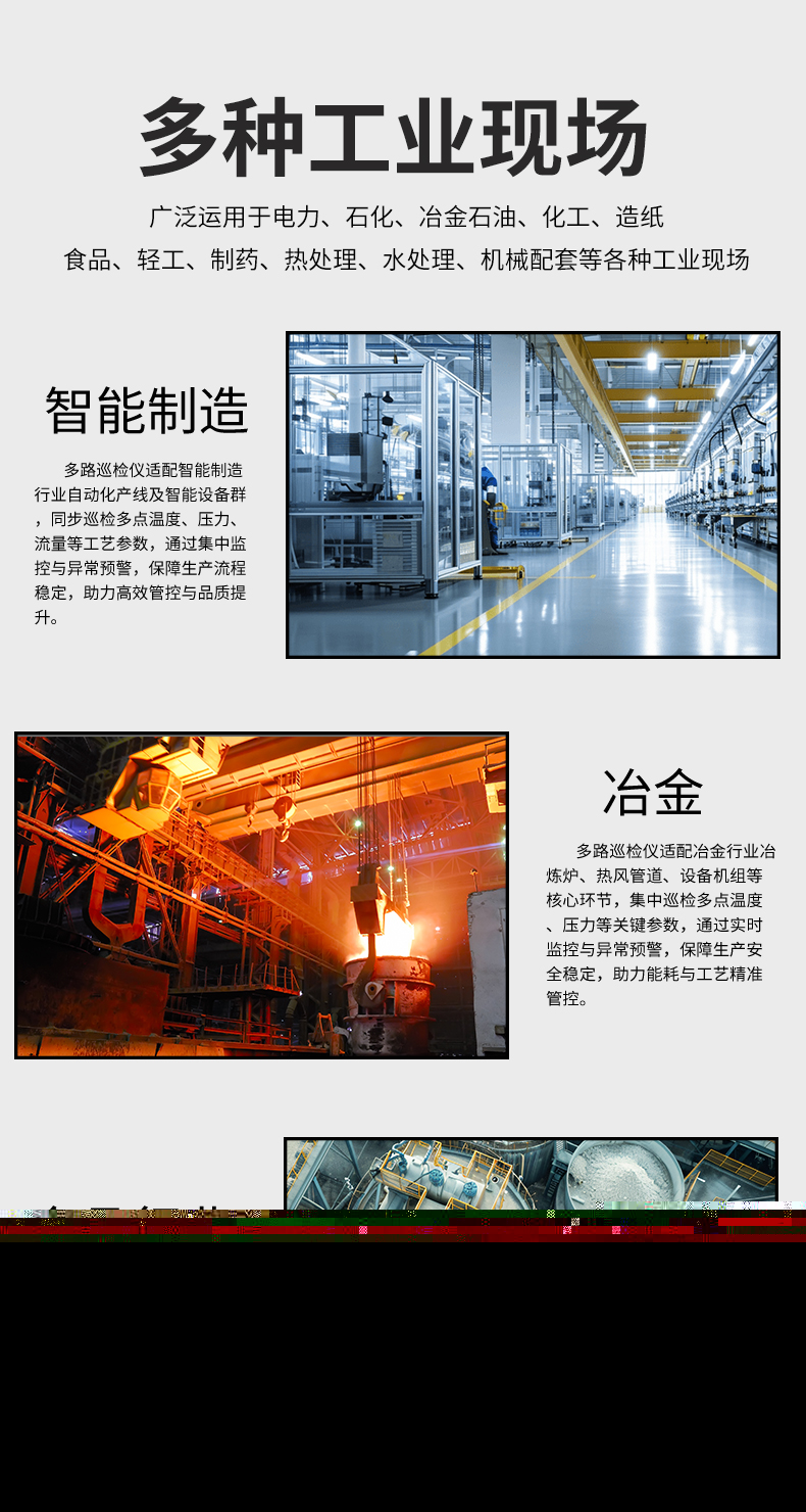 虹潤公司是專業(yè)生產(chǎn)多路溫度巡檢儀的國家專精特新“小巨人”企業(yè),生產(chǎn)的增強(qiáng)型多路巡檢儀,具有8路/16路測量通道,全切換信號輸入,多種輸出類型,高抗干擾,RS485/RS232通訊等特點(diǎn)。產(chǎn)品獲得巡回檢測顯示方法及裝置、儀表殼體等2項(xiàng)國家發(fā)明專利,主持起草工業(yè)過程控制系統(tǒng)用模擬輸入兩位或多位輸出儀表、物聯(lián)網(wǎng)智能溫度儀表通用技術(shù)條件等2項(xiàng)國家標(biāo)準(zhǔn),以及通信系統(tǒng)多通道數(shù)據(jù)采集控制終端規(guī)范軍用標(biāo)準(zhǔn),參與國際5G標(biāo)準(zhǔn)制定,取得多回路測量顯示控制儀等3項(xiàng)相關(guān)軟件著作權(quán)。產(chǎn)品廣泛應(yīng)用于電力、石化、冶金、制藥、水處理、機(jī)械配套等各種工業(yè)現(xiàn)場。