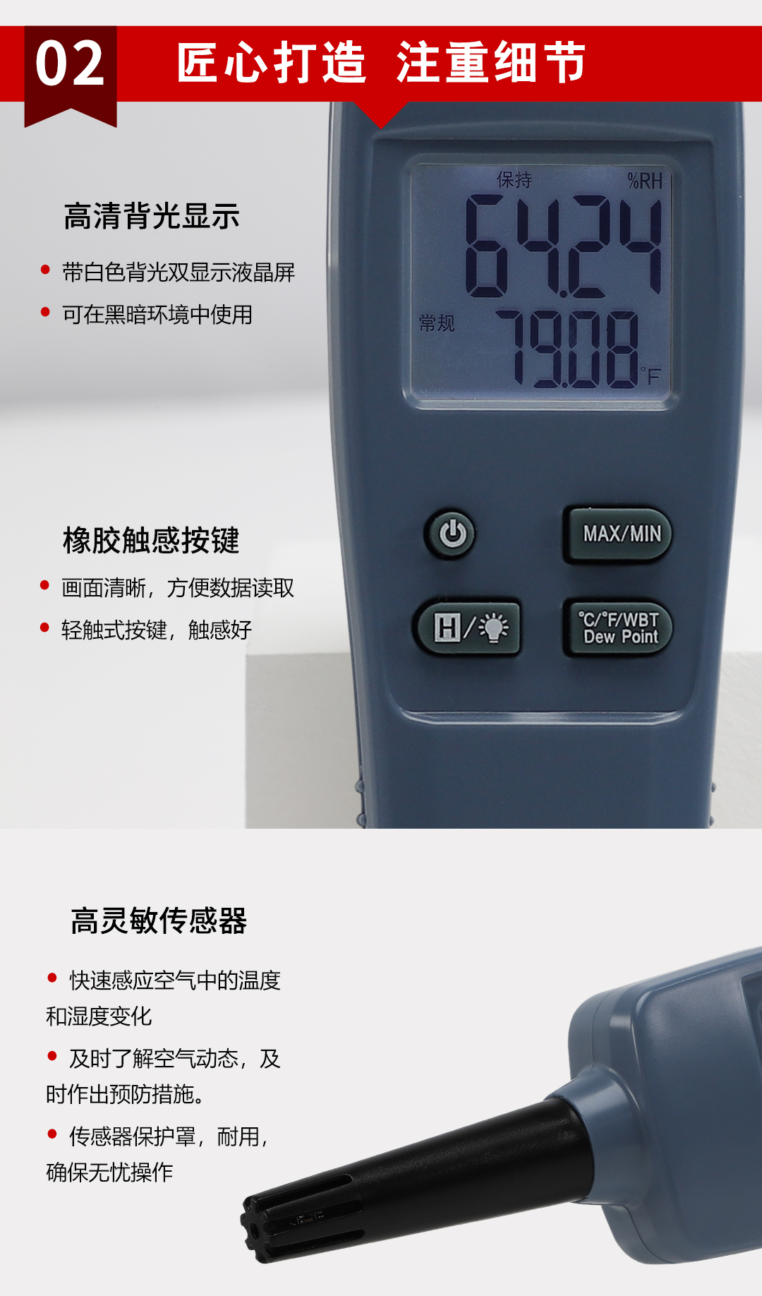 虹潤(rùn)公司是專業(yè)生產(chǎn)環(huán)境監(jiān)測(cè)儀表的國(guó)家專精特新“小巨人”企業(yè)。生產(chǎn)的手持式溫濕度檢測(cè)儀,具有測(cè)量精度高,多參數(shù)測(cè)量,最大最小值記錄,小巧便捷、低功耗省電設(shè)計(jì)等特點(diǎn)。產(chǎn)品獲得一種手持式低功耗溫濕度檢測(cè)儀、大屏幕溫濕度記錄儀等2項(xiàng)國(guó)家發(fā)明專利,主持起草物聯(lián)網(wǎng)智能溫度儀表通用技術(shù)條件、冷鏈溫度記錄儀等2項(xiàng)國(guó)家標(biāo)準(zhǔn),以及通信系統(tǒng)多通道數(shù)據(jù)采集控制終端規(guī)范軍用標(biāo)準(zhǔn),以及現(xiàn)場(chǎng)設(shè)備集成等5項(xiàng)智能制造國(guó)家標(biāo)準(zhǔn),參與國(guó)際5G標(biāo)準(zhǔn)制定,取得環(huán)境溫濕度測(cè)試儀等3項(xiàng)相關(guān)軟件著作權(quán)。產(chǎn)品廣泛應(yīng)用于實(shí)驗(yàn)室、博物館、農(nóng)業(yè)大棚、生產(chǎn)車間、倉(cāng)庫(kù)、配電機(jī)房等諸多領(lǐng)域。