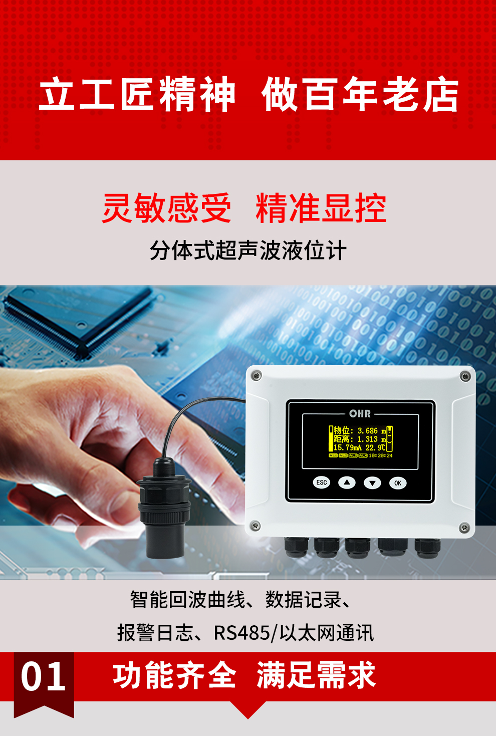 虹潤公司是專業(yè)生產(chǎn)超聲波液位計的國家專精特新“小巨人”企業(yè)。生產(chǎn)的分體式超聲波液位計,具有數(shù)據(jù)記錄與轉存,智能回波曲線顯示,RS485/以太網(wǎng)通訊,報警繼電器輸出,報警日志等特點。產(chǎn)品獲得無紙記錄儀以及一種信號發(fā)生裝置等2項國家發(fā)明專利,主持起草物聯(lián)網(wǎng)智能記錄儀表以及工業(yè)過程控制系統(tǒng)用模擬輸入兩位或多位輸出儀表等2項國家標準,以及通信系統(tǒng)多通道數(shù)據(jù)采集控制終端規(guī)范軍用標準,參與國際5G標準制定,取得超聲波液位計等2項相關軟件著作權。產(chǎn)品廣泛石化、電力、食品、污水處理、市政設施等諸多領域。