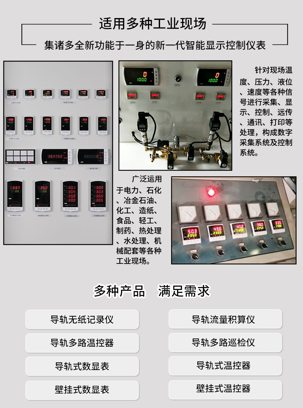 虹潤公司是專業(yè)生產(chǎn)多路溫度巡檢儀的國家專精特新“小巨人”企業(yè)。生產(chǎn)的導軌多路巡檢儀,具有八回路巡檢采集,全切換信號輸入,高抗電磁干擾,全隔離設計,分別報警/分別變送輸出等特點。產(chǎn)品獲得巡回檢測顯示方法及裝置以及工業(yè)模塊的導軌式安裝結(jié)構(gòu)等2項國家發(fā)明專利,主持起草工業(yè)過程控制系統(tǒng)用模擬輸入兩位或多位輸出儀表、物聯(lián)網(wǎng)智能溫度儀表通用技術(shù)條件等2項國家標準,以及通信系統(tǒng)多通道數(shù)據(jù)采集控制終端規(guī)范軍用標準,參與國際5G標準制定,取得巡回檢測控制儀等3項相關(guān)軟件著作權(quán)。產(chǎn)品廣泛應用于石化、冶金、電力、食品、制藥、水處理、實驗室等諸多領(lǐng)域。