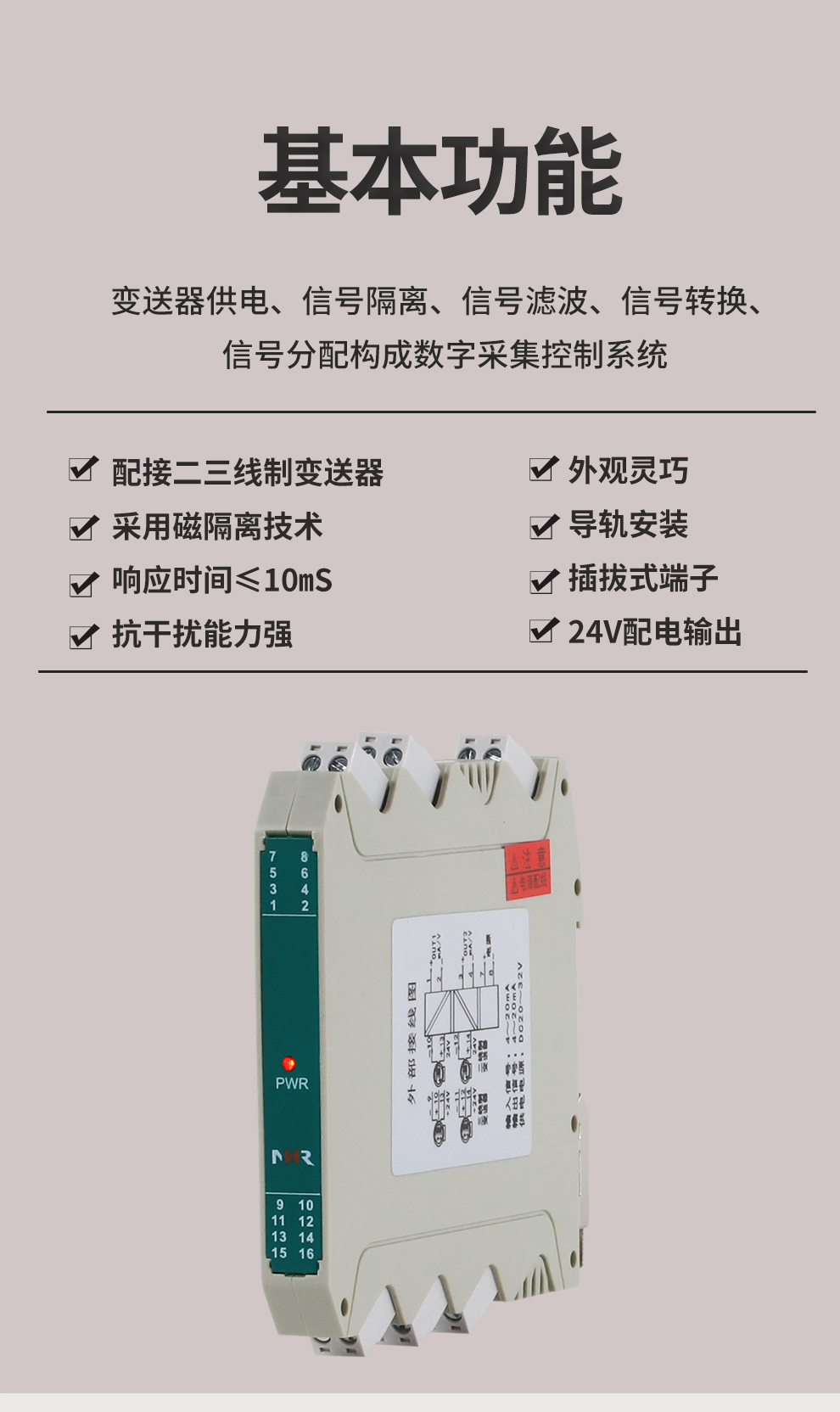 虹潤公司是專業(yè)生產隔離器的國家專精特新“小巨人”企業(yè)。生產的配電器,具有配接二三線制變送器,采用磁隔離技術,響應時間快,抗干擾能力強,24V配電輸出,性價比高等特點。該產品不僅通過德國萊茵 CE 認證與 SIL 功能安全認證,還獲得信號隔離器、二端子模塊、無源信號隔離器等3項國家發(fā)明專利,主持起草現(xiàn)場設備工具(FDT)接口規(guī)范、工業(yè)過程測量和控制系統(tǒng)用隔離式安全柵、工業(yè)過程測量和控制系統(tǒng)用配電器等3項國家標準,以及通信系統(tǒng)多通道數(shù)據(jù)采集控制終端規(guī)范軍用標準,參與國際5G標準制定。產品廣泛應用于石油、化工,冶金、電力、食品、光伏能源、污水處理等需要電隔離的工業(yè)自動化控制系統(tǒng)。
