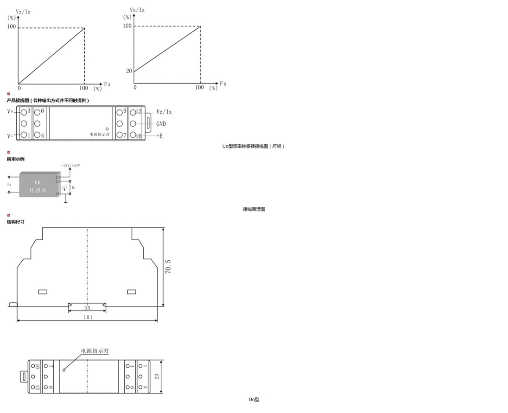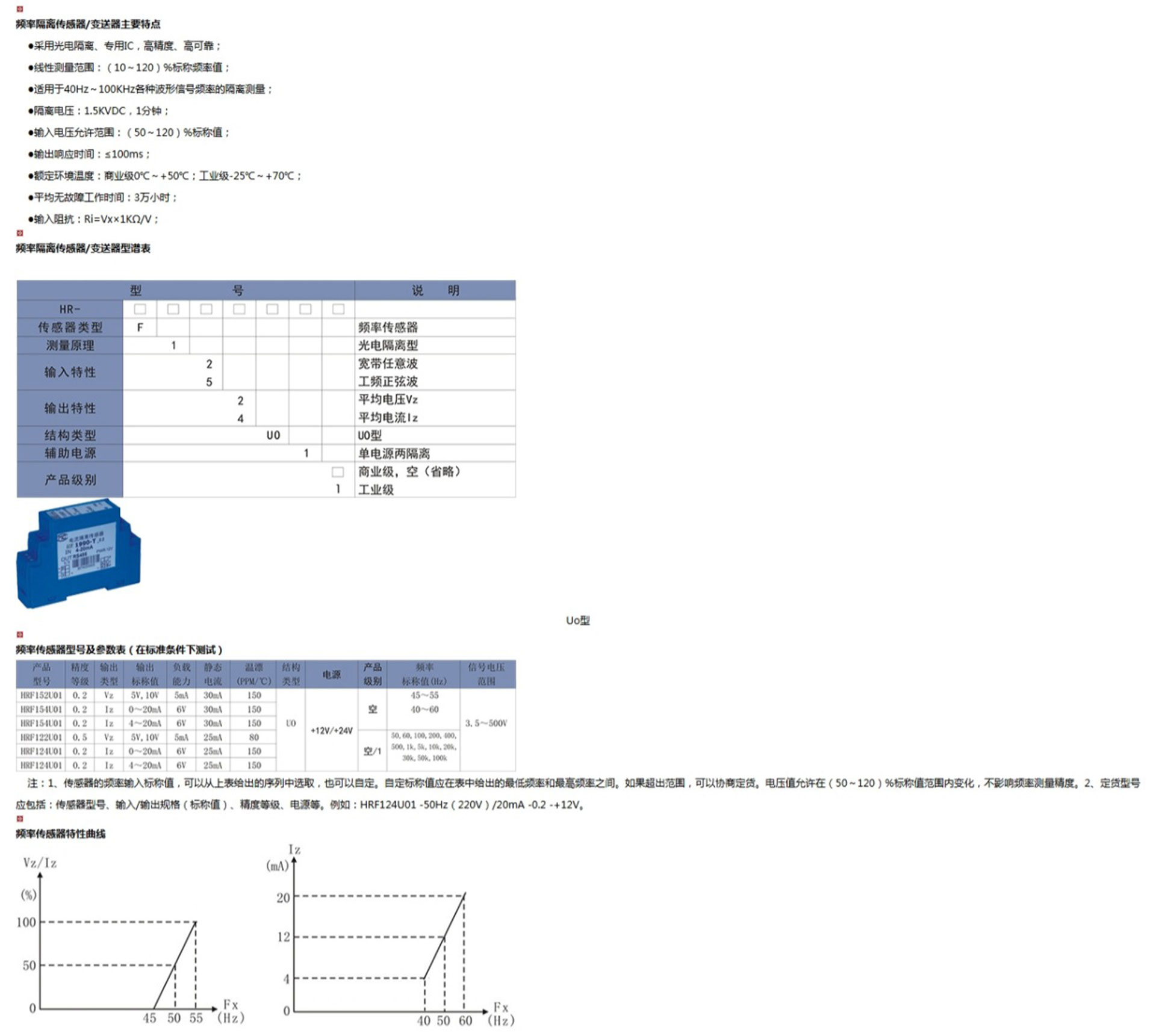 頻率隔離傳感器/變送器是指被測交流電壓頻率隔離轉(zhuǎn)換成按線性比例輸出的單路標(biāo)準(zhǔn)直流電壓或直流電流。